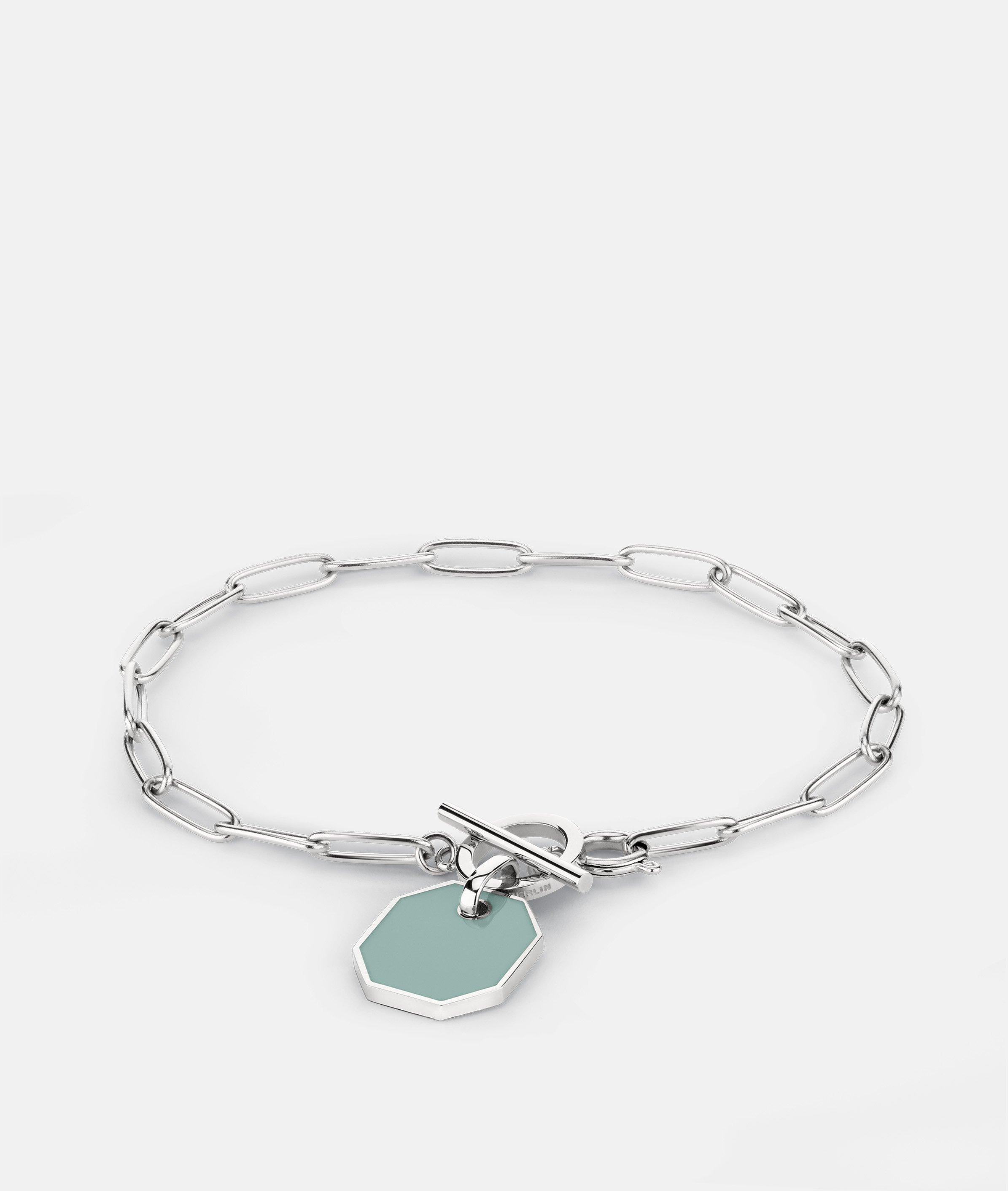 Das Armband hat einen achteckigen Anhänger und einen T-Bar-Verschluss. Mit dem farbigen Epoxyanhänger passt dieses Schmuckstück zu jedem stylischen Look. Die Kombination aus Form und Farbe sorgt für ein absolutes Statement und runden deinen Style perfekt ab.
